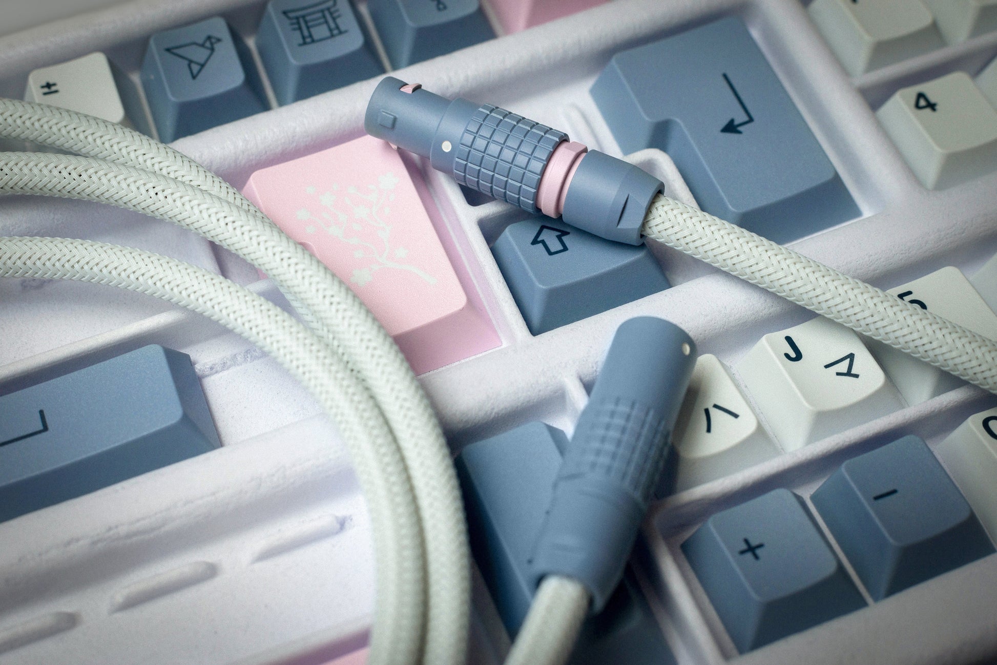 Designed to match GMK Fuji keycaps, this stunning cable uses our custom formulated Cerakote to give a perfect 1:1 colour match. Mixed using the actual keycaps as a reference, not a Pantone or RAL swatch/code.