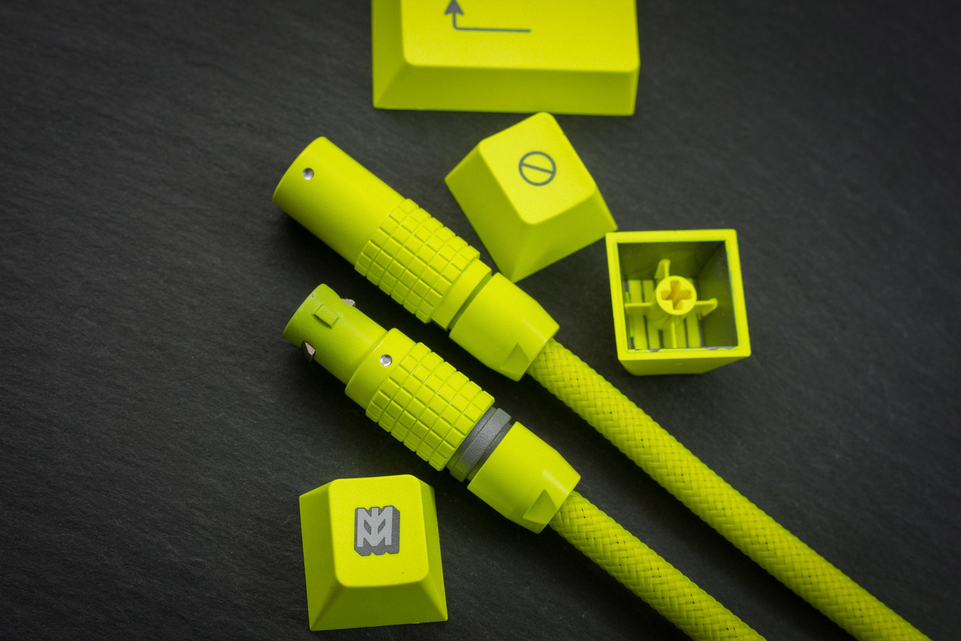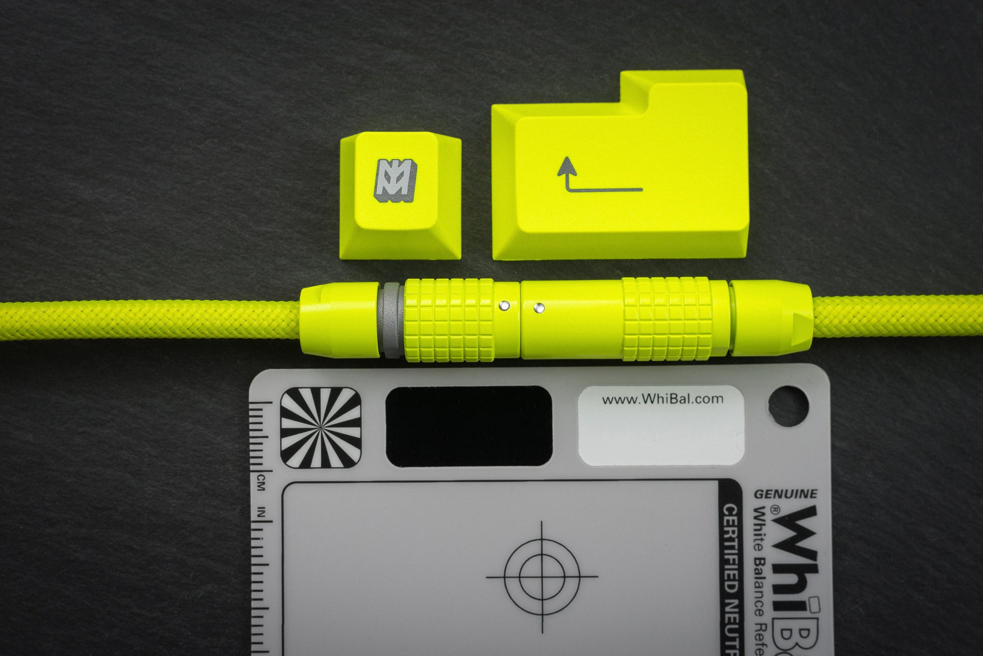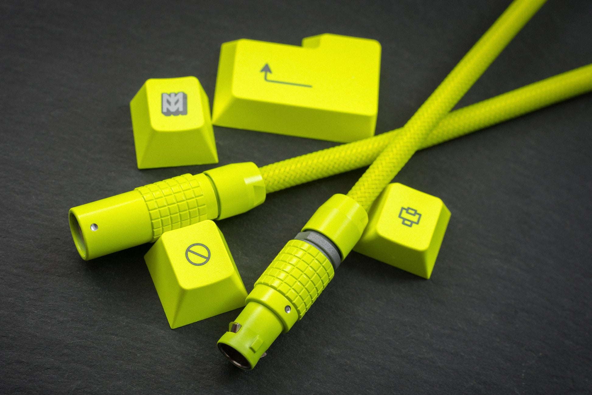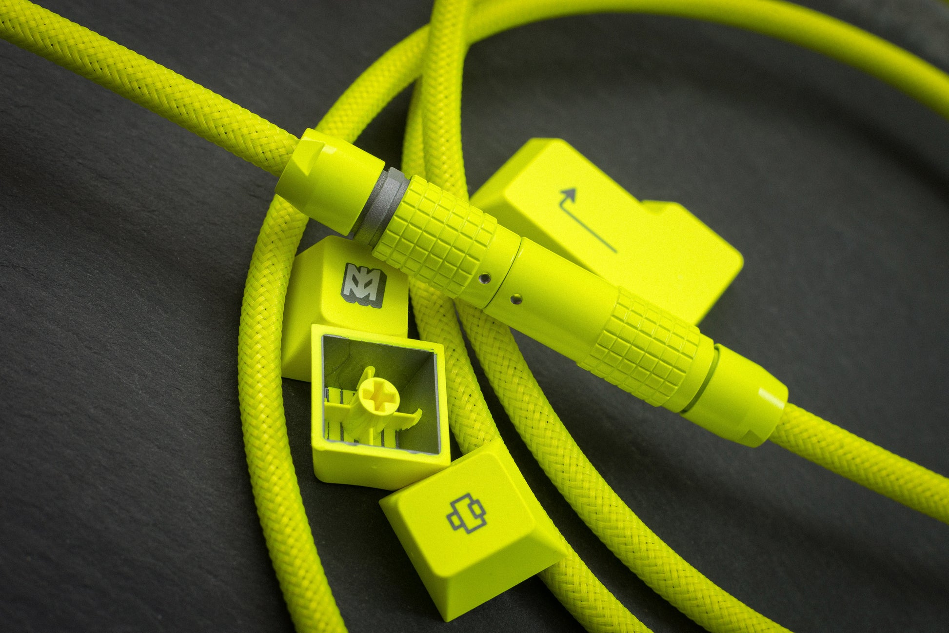 Designed to match GMK Hi-Viz! keycaps, this cable uses our custom formulated Cerakote. Mixed in house and matched to the actual keycaps not a Pantone or RAL swatch or code.