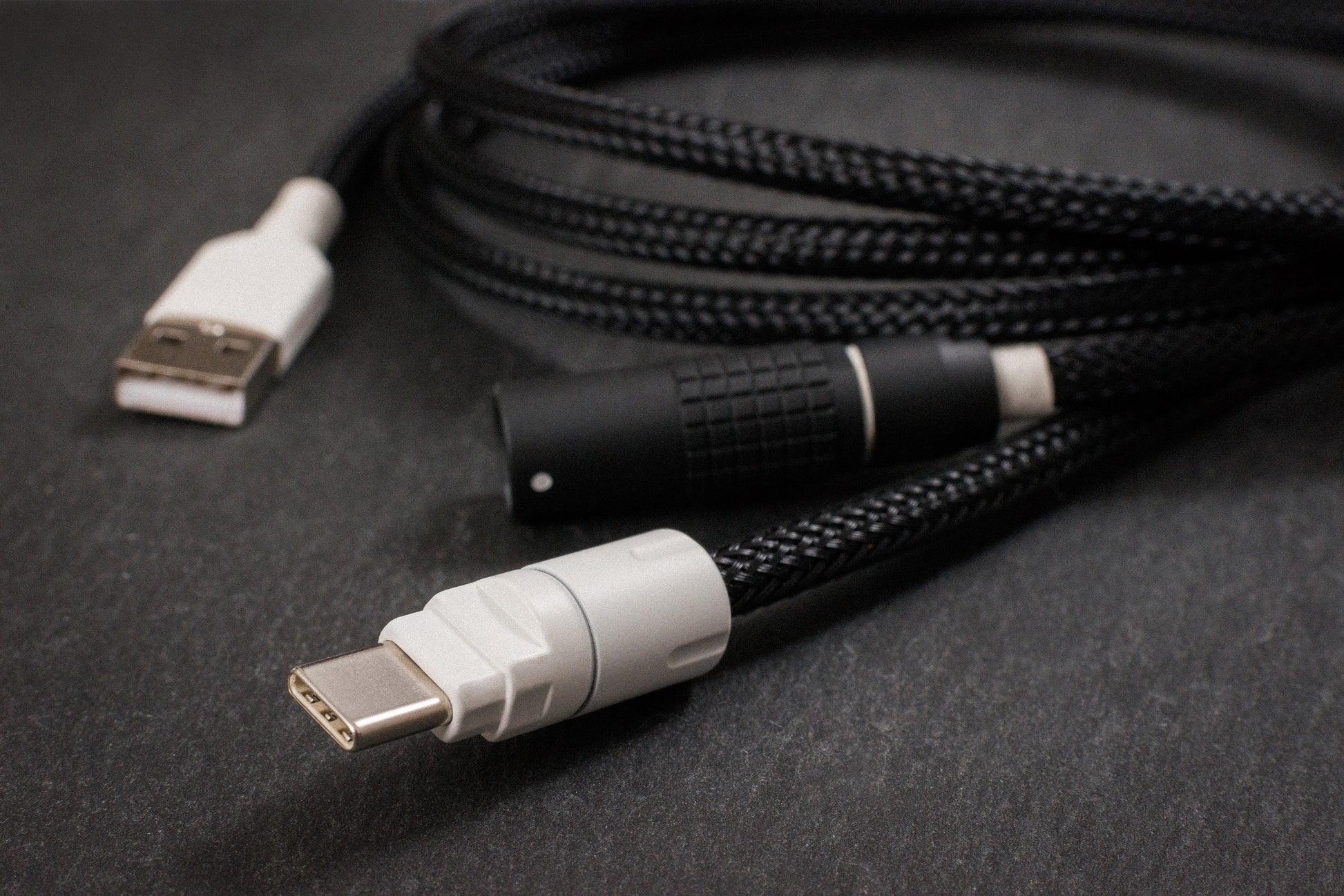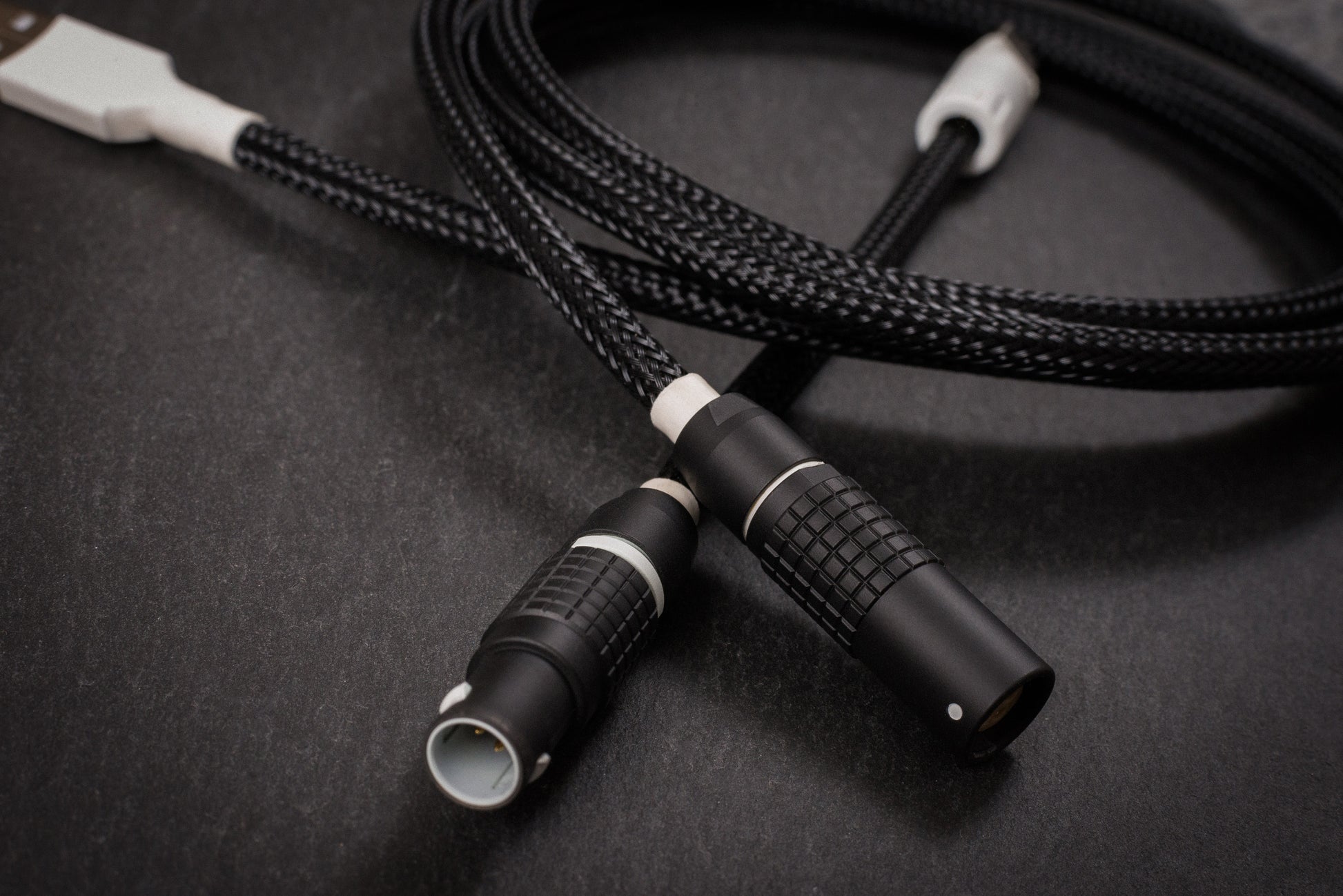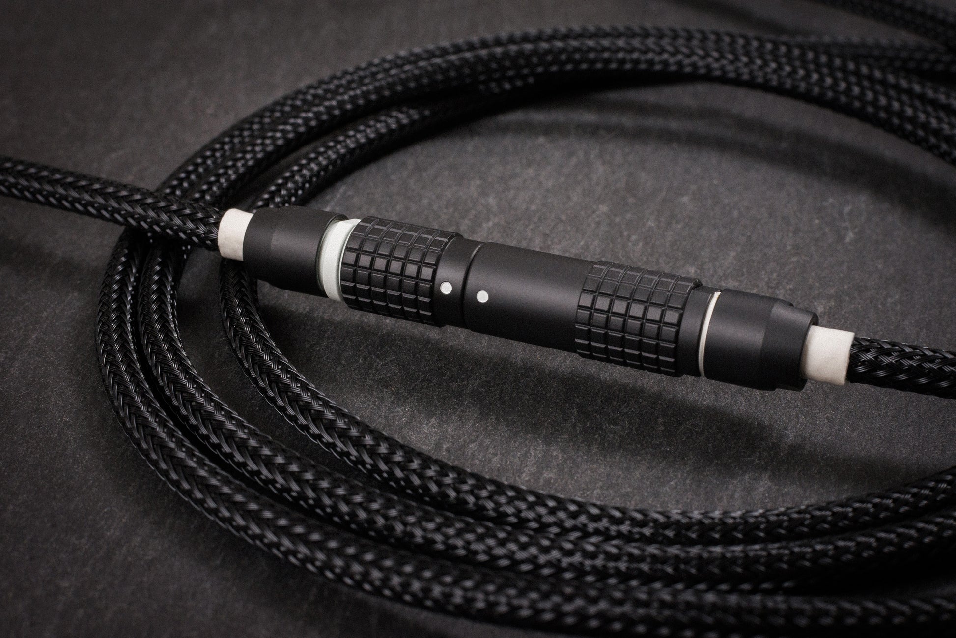 A stunning cable that is perfect for any black keyboard or white on black keycap set. Made with superb materials and designed to have just the right amount or white accents to compliment any WoB set. The same design as the coiled version, but in a straight design.
